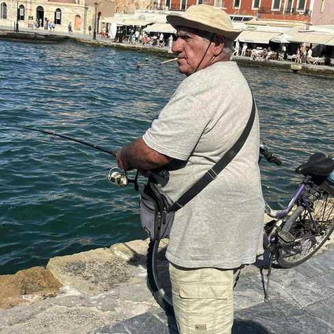 When we reached the sea, the Venetian harbour lay before us, edged with elegant buildings and the first mosque built by the Ottomans in 1645. At the harbour mouth stood the 19th-century lighthouse. The harbour front was a bit too busy with tourists, but that didn’t stop a lone fisherman with his rod and line successfully landing a good-sized fish right in front of us!