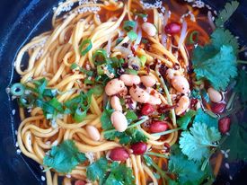 Happily, my theory proved correct and we were rewarded with the excellent “Chilli Family Noodles” – literally a cordoned off corridor in the train station (next to the loos). The place was full, the menu comprised of photos on the wall, the smells were exquisite and I have to say the noodles were divine. I went for the veggie wheat noodle soup and Brian went for a duck noodle option, of which he said the same. This place is the epitome of what we are searching for; simple, reasonable (very, in this case), offering a few dishes, excellently done. Where the love goes into the food, not the décor. Give this man a (Michelin) star! 100% we will be coming back to this place, and soon.