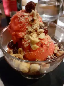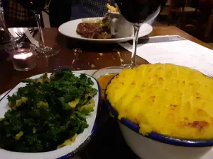 Later that evening, we headed to The Crown in the centre of town. A nostalgic place for us, having visited many times over the years. Again, just the right level of formality for us (ie. not very much!). We had a great meal, the highlights included: a squash and local cheese salad, slightly smoked fish pie with turmeric mash, truffle fries and a beautiful blood orange sorbet with cherries and macadamia nuts. In truth, we had dined so heartily at lunch we were not able to fully apply ourselves to the task in hand!