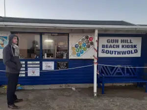 Our final hitching post was another favourite, The Gun Hill tea hut – perfect for a restorative coffee, with a blustery sea view. Just what was needed after the “hectic retail experience” of Southwold town centre, before hitting the A14 home.